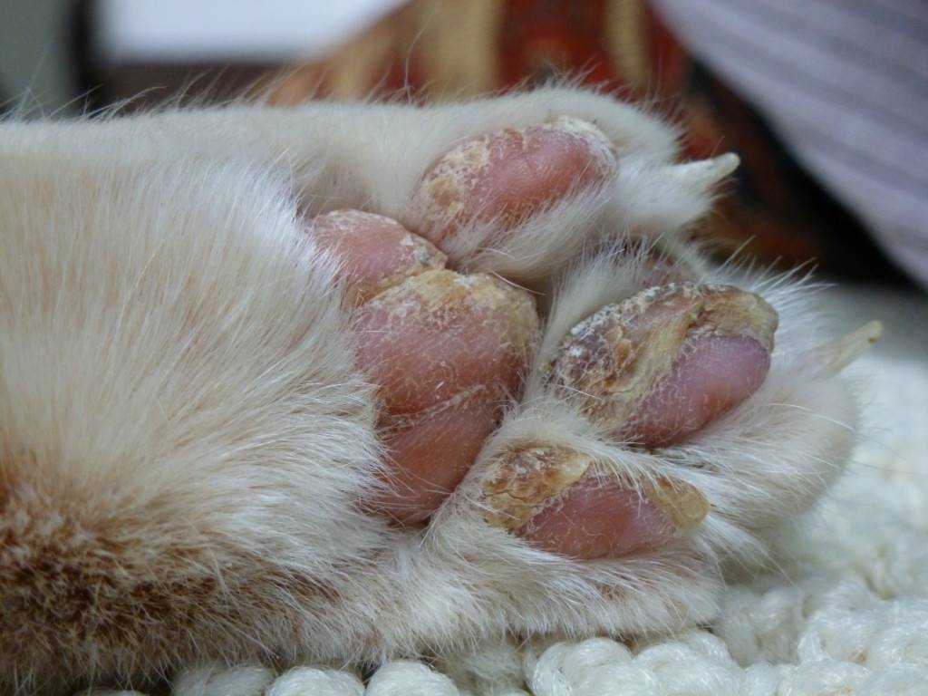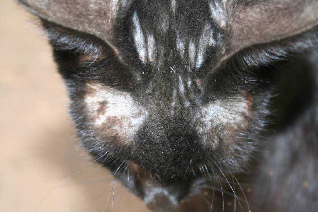 При раздвигании шерсти можно увидеть на коже живых блох и темные мелкие крупинки их экскрементов. Блохи любят прятаться в подмышечных впадинах, на внутренней поверхности ляжек, на шее и под мордой.