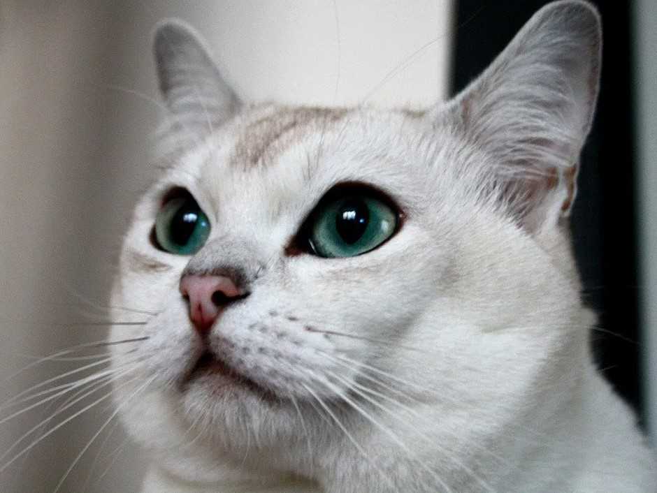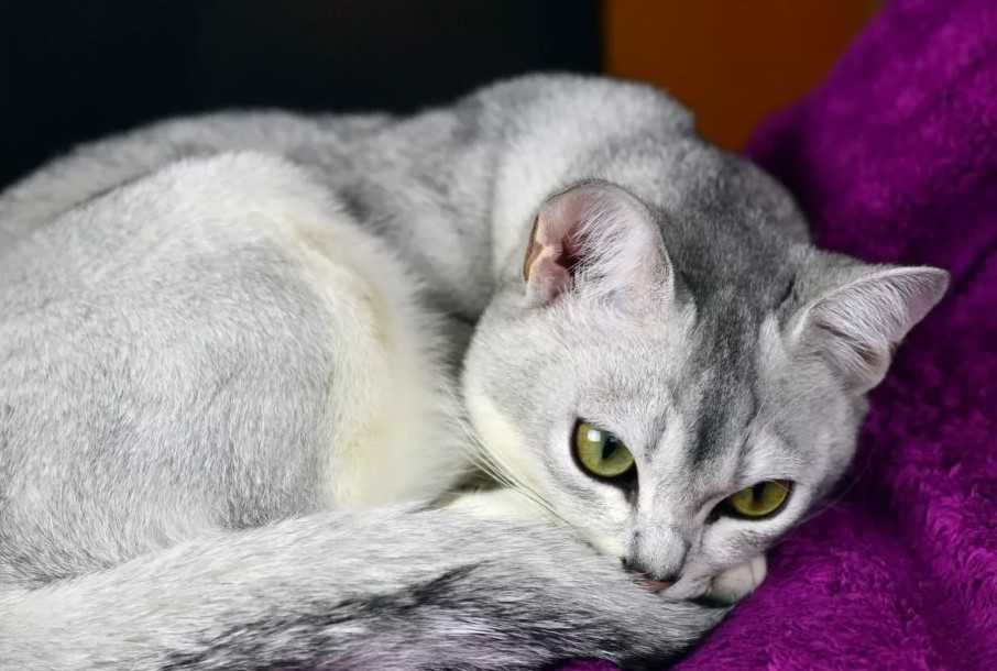 - Белая шиншилла. Удивительно красивое животное с зелеными или голубыми глазами и светло-серой шерстью. Остевые волоски у таких кошек настолько светлые, что они полностью теряются на фоне подшерстка.