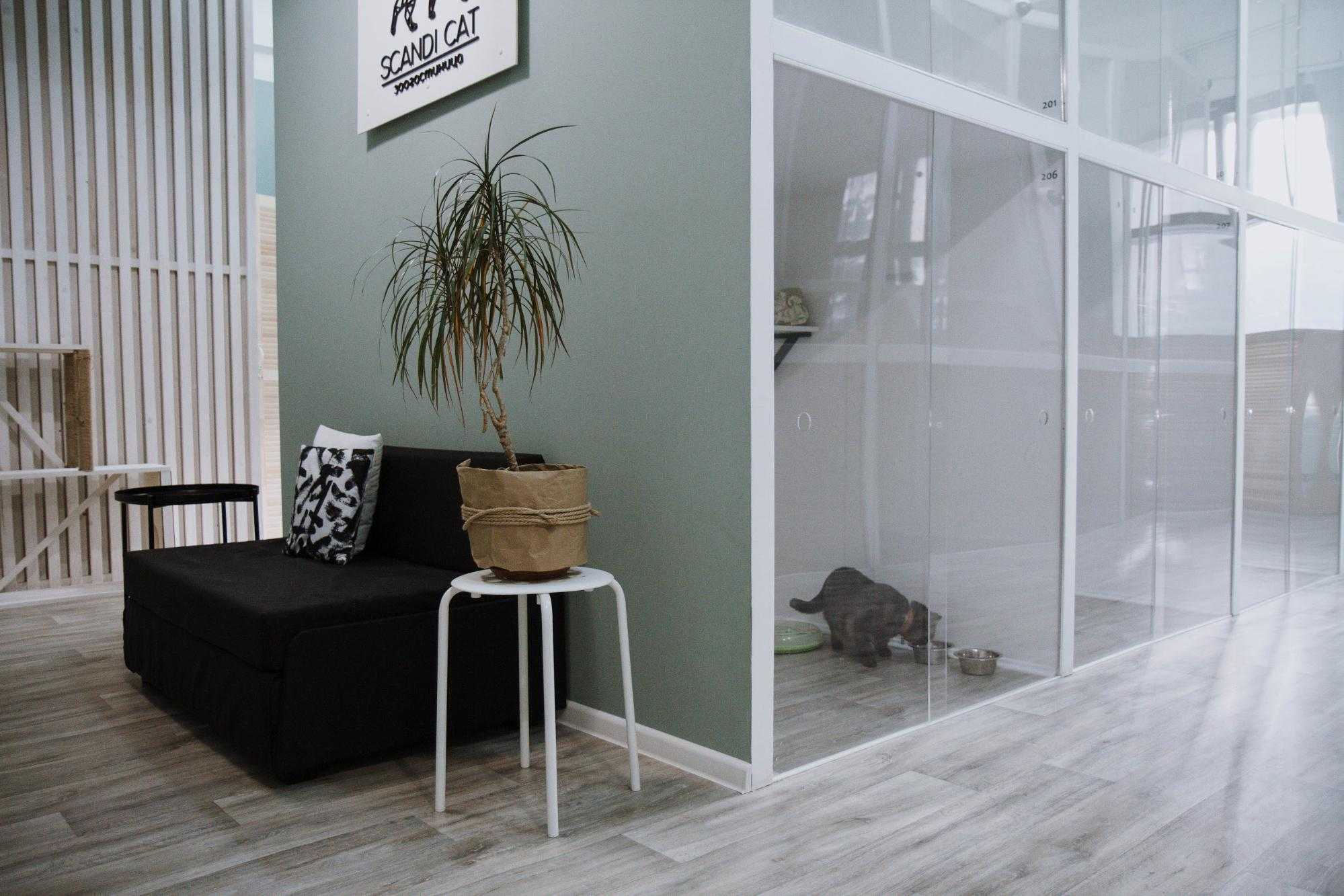 Сначала расскажу о строительстве, а потом — о том, как устроены номера для котиков. Мне хотелось, чтобы животным и людям в гостинице было комфортно, поэтому при строительстве использовала экологически чистые материалы: дерево, стекло, безопасные краски, которые подходят для детских комнат, — они не выделяет никаких вредных веществ.