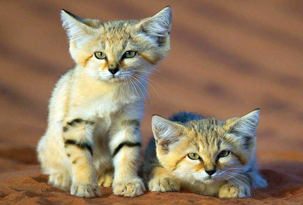 Длина туловища этих кошек — от 65 до 90 см (причем почти половина этого значения приходится на хвост). Вес самцов достигает 3,5 кг, а самок — 3 кг. Обитают барханные кошки в пустынях, каменистых долинах, ведут ночной образ жизни. Кажутся очень милыми, пусть и являются плотоядными — охотятся на тушканчинов, пауков, ящериц, насекомых.