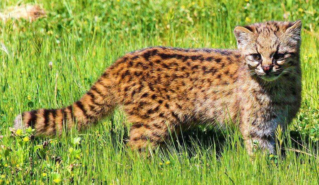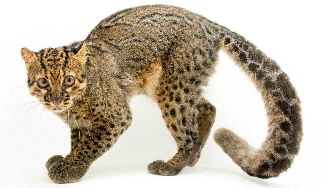 Миниатюрная копия ягуара – как можно понять из названия. Имеют гибкое тело и сильные, но короткие ноги. Высота в холке — до 35/30 см (самцы/самки). Вес — до 9 кг. Встречаются в разнообразных местах — саваннах, лесах, тропиках. Скрытные звери, но ведут дневной образ жизни. Питаются мелкими млекопитающими, земноводными, птицами, рыбой.