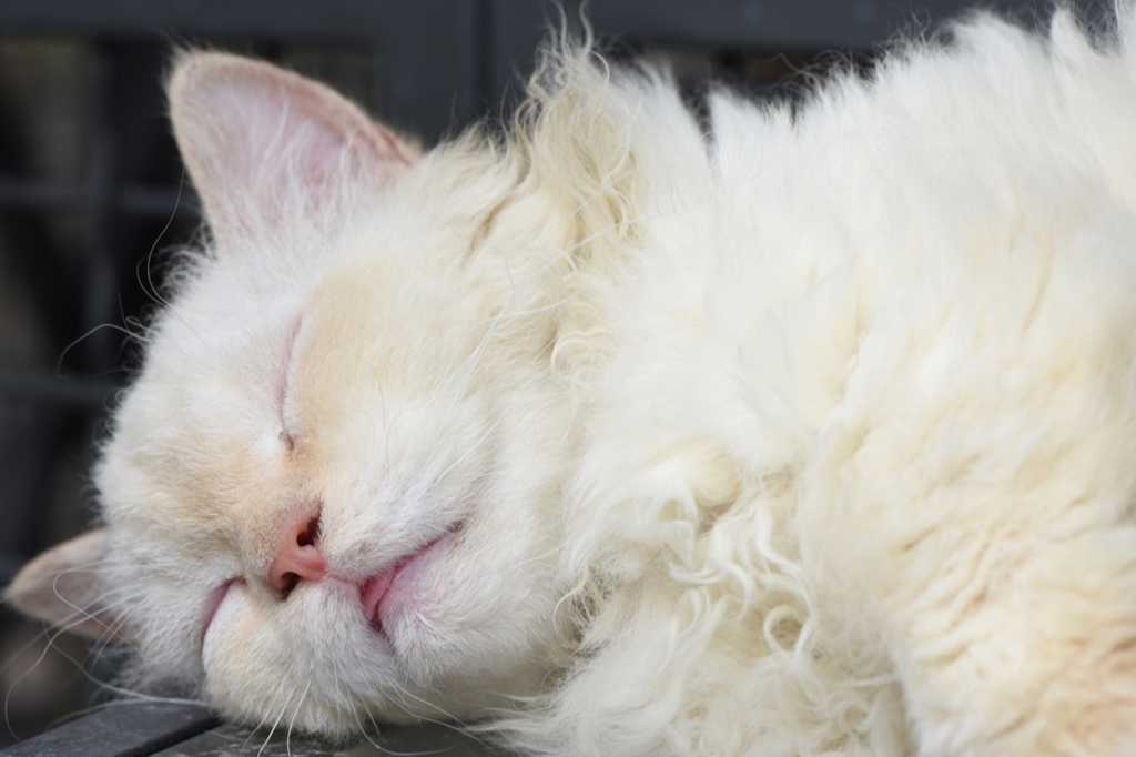 Если периодически сбрызгивать шерстку кошки из пульверизатора обычной водой, то будет меньше колтунов, а кучерявость станет заметнее.