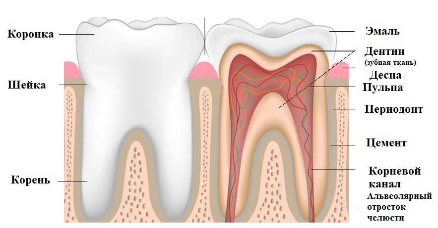 Схема строения зуба и пародонта.Строение зуба:ДентинЗубная эмаль ПульпаВ анатомии зуба выделяют: