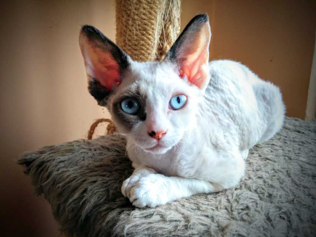 Чрезвычайно интересные внешне кошки — их шерсть кудрява. Эти кошки не опасны для людей с аллергией, но они являются стопроцентно домашними кошками и их особенность — маленькие подушечки на лапках, из-за чего коготки полностью не втягиваются. Поэтому заниматься регулярной подрезкой когтей нужно обязательно. В остальном уходе они легки.