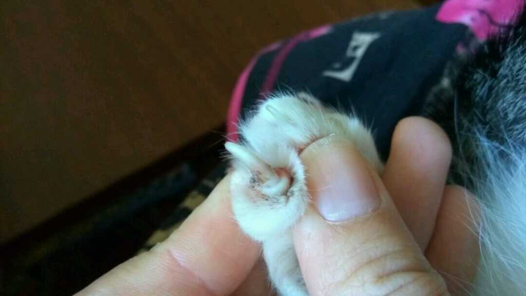 - при скапливании сального секрета между коготками (у бесшерстных);
