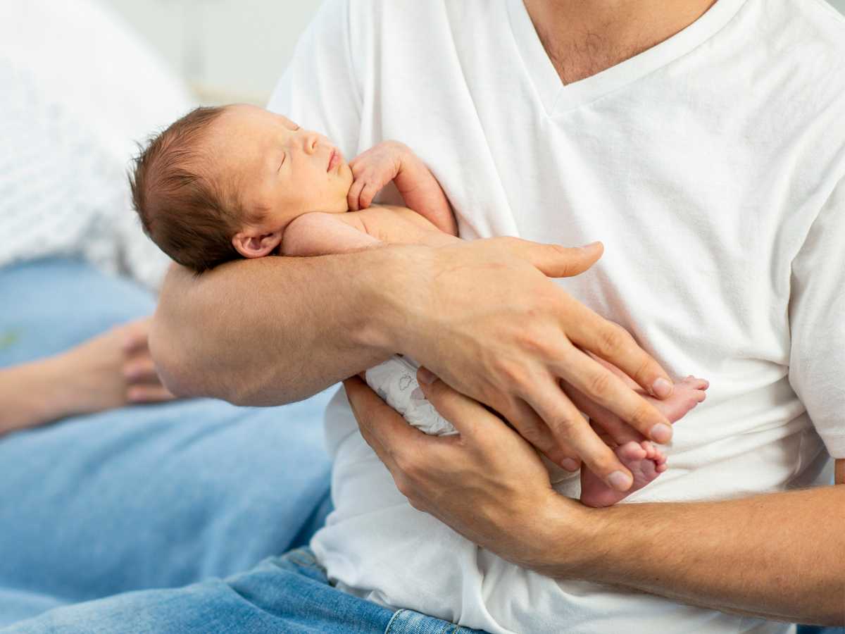 Расположите малыша лицом к себе. Его голова должна лежать на вашем плече или груди. Одной ладонью вы поддерживаете спину ребенка, а второй прижимайте его к себе на уровне попы.