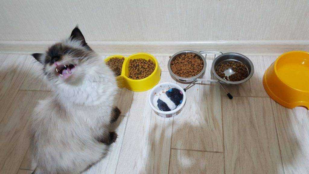 На заметку! Категорически не рекомендуется ставить миску с водой около чашки с кормом. Это связано с тем, что вода должна быть идеально чистой и не иметь сторонних запахов, в противном случае животное может и дальше отказываться от питья.
