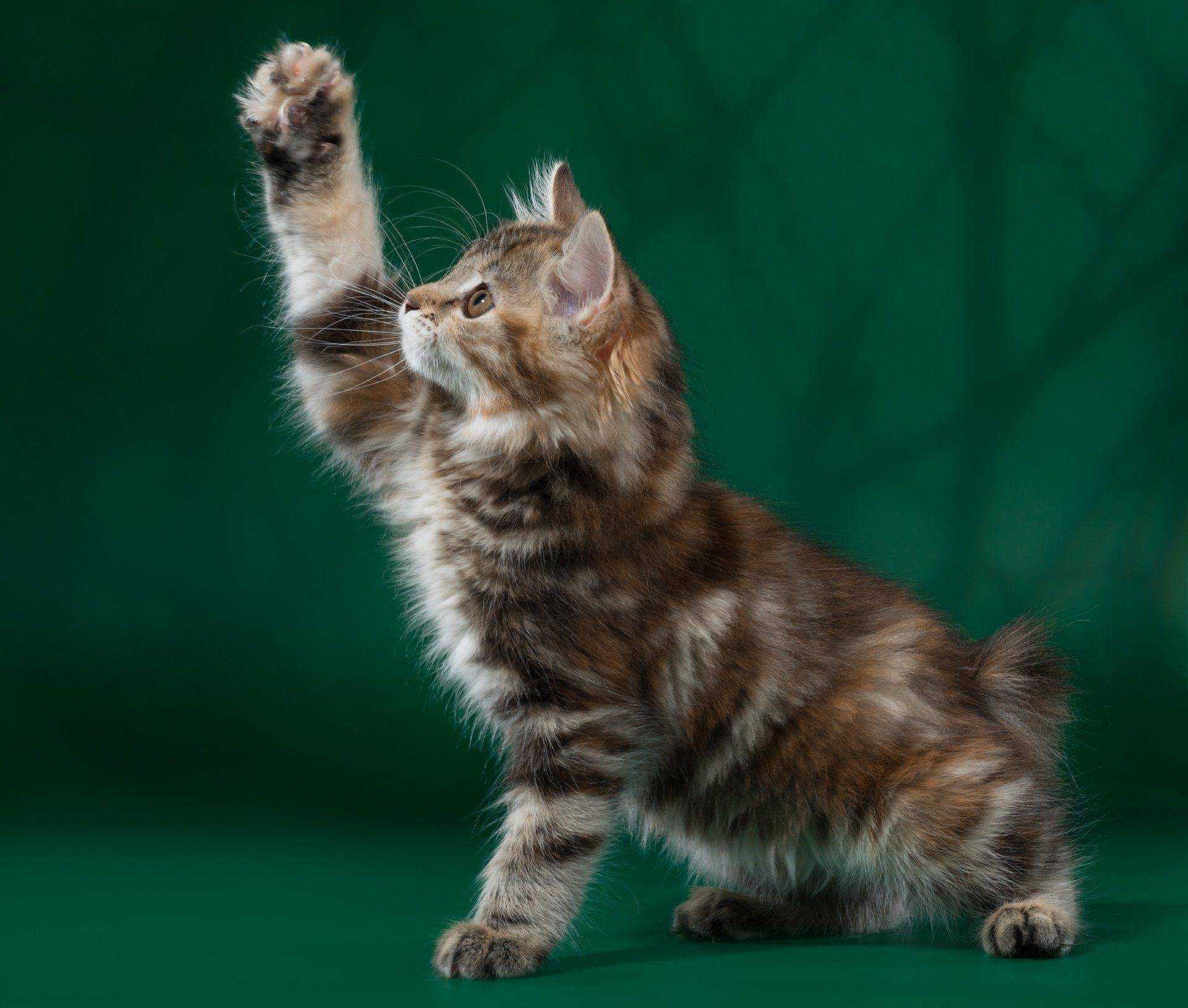 - Хвост – состоит из одного или более изгиба (на ощупь – как минимум 2 позвонка), выглядит как пушистая кисть или помпон. Видимая длина хвоста с шерстью – от 1,5 см до 8 см у короткошерстных котов, и до 13 см у полудлинношерстных.