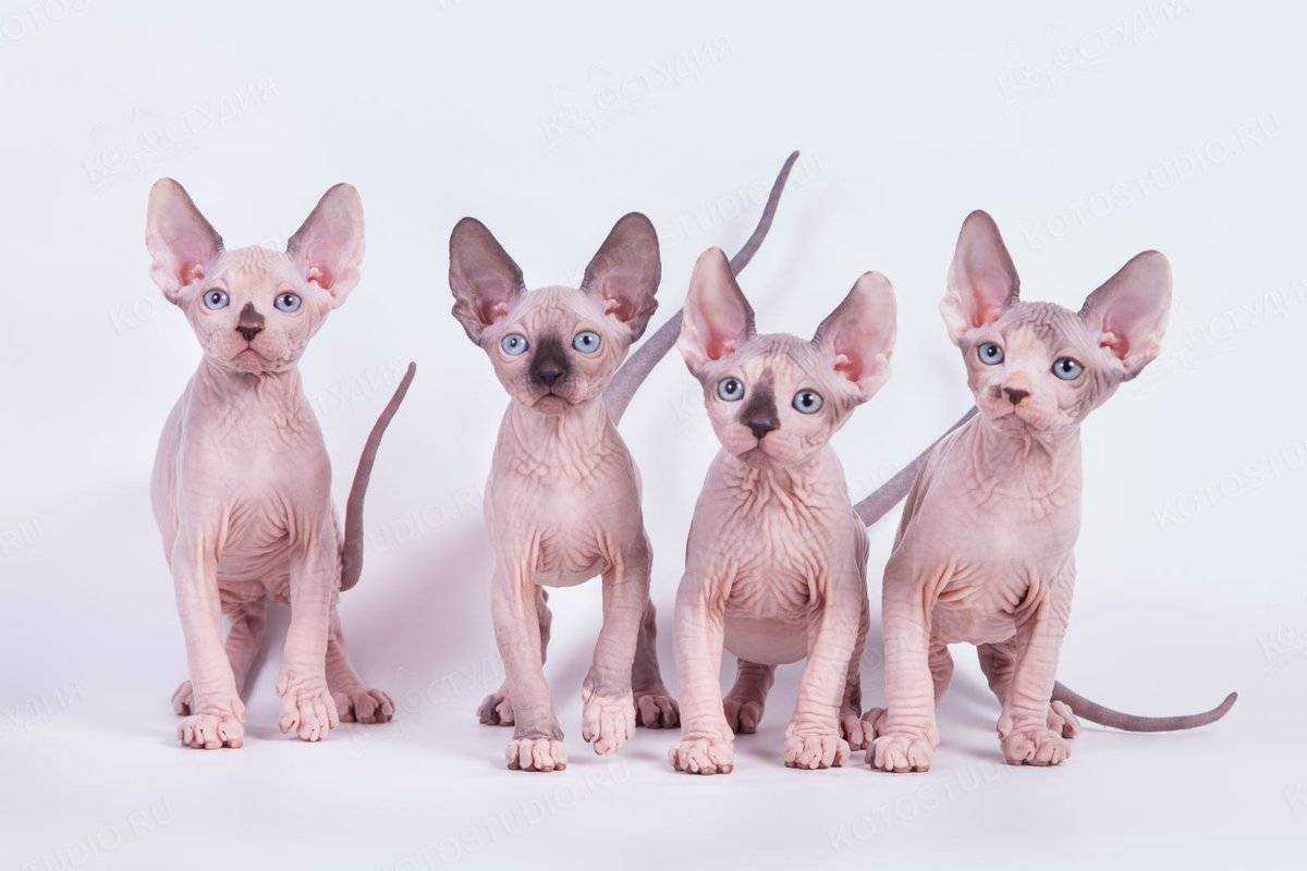 - Голые. Котята рождаются полностью голыми, эти экземпляры являются наиболее ценными и дорогостоящими. Бывают гомозиготными и раздевшимися (у новорождённых котят заметен пушок, который вскоре исчезает).