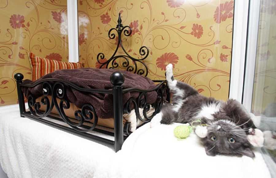 Помещения для кошек находятся отдельно от помещений для собак, желательно даже с отдельным входом, так чтобы лающие постояльцы, отправляясь на прогулку, не беспокоили постояльцев мяукающих. Сами вольеры свободные, не более 2–3 в одном помещении. Отдельный выход должен вести на огороженную территорию для прогулок.