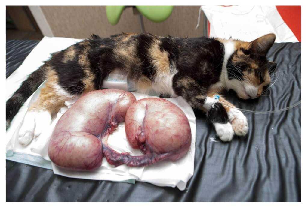 Пиометра у кошек в закрытой форме устраняется только операцией. Этот способ лечения – единственно адекватный и результативный в данном случае, повышающий шансы животного на выживание. В процессе удаления пиометры вырезаются все репродуктивные органы, включая яичники и наполненные гноем рога матки.