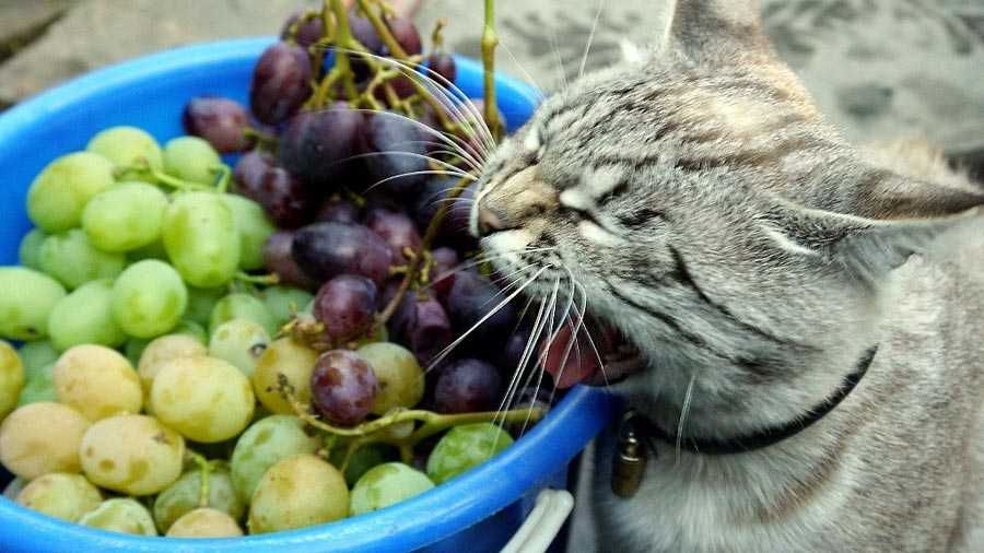 - Любимый некоторыми кошками виноград и изюм вредны для здоровья кошки — они вызывают почечную недостаточность.