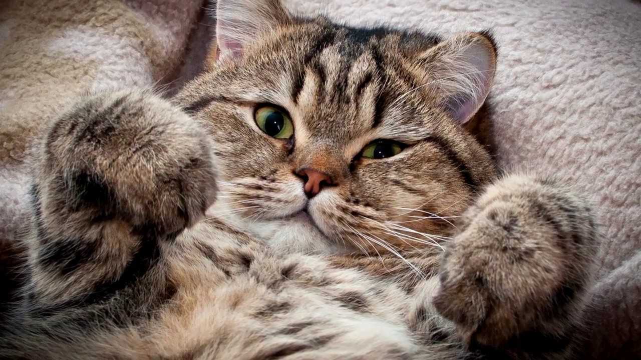 - на спине — поза особого доверия, так чаще спят котята, чем взрослые животные; открыть беззащитный животик кошка способна лишь в том случае, когда абсолютно уверена в своей безопасности;