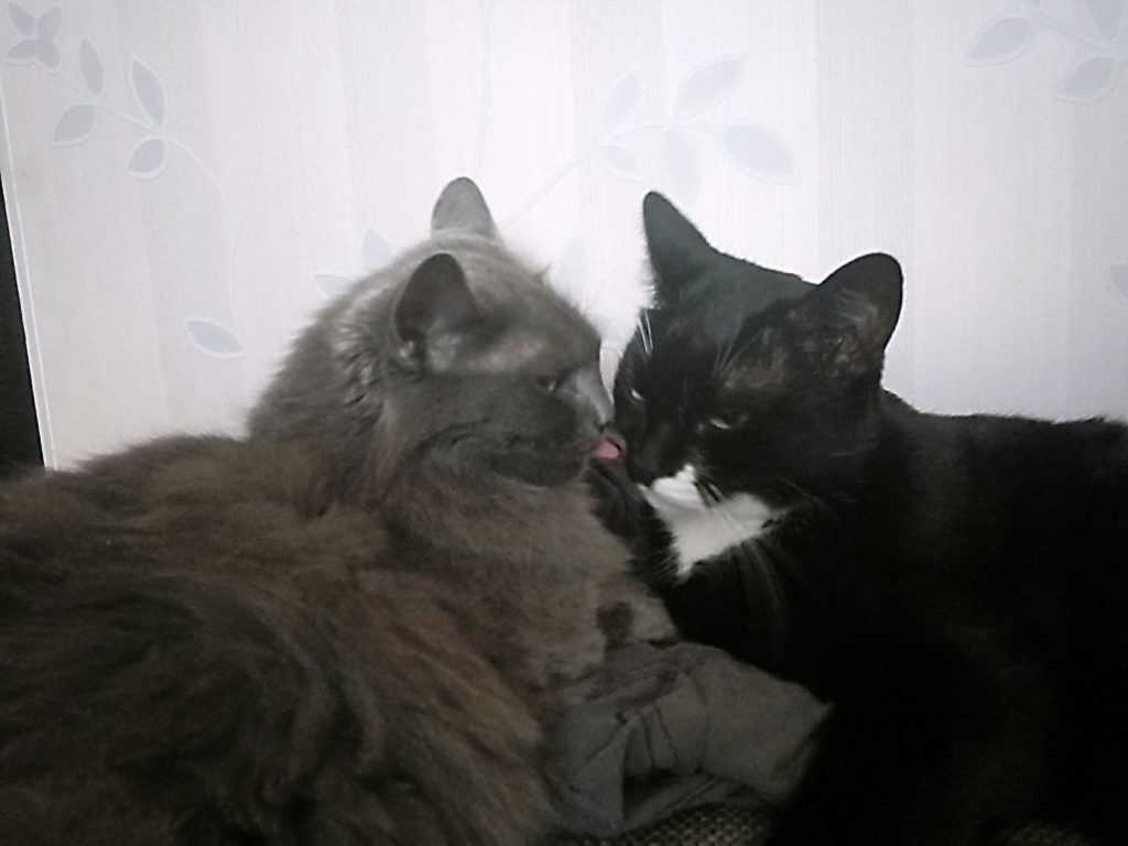 Котик Феликс (слева) хвалит котика Маркиза (справа) за то, что он — молодец