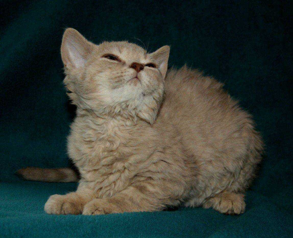 Короткошерстный селкирк рекс имеет шерстку плюшевую, очень мягкую, кудряшки беспорядочные, не волнистые, а скорее завитками.