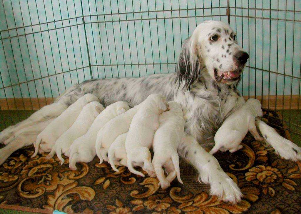 Но наиболее заметными признаки становятся после завершения первой половины беременности. У многократно рожавших сук за неделю до родов может начать врабатываться молоко. Если сука рожает в первый раз, то молоко появится во время родовой деятельности или после выхода последа.