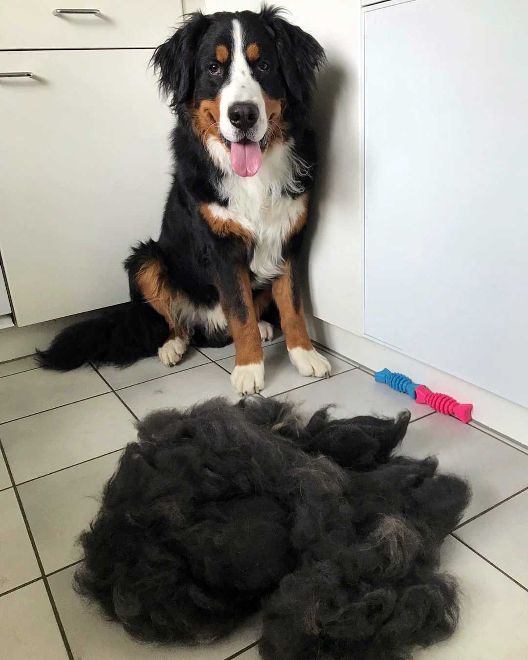 Во время сезонной линьки шерсть берна будет повсюду. Ее количество можно уменьшить, вычесывая подшерсток фурминатором. В остальное время регулярное расчесывание также необходимо, чтобы шерсть оставалась гладкой и блестящей. Летом из нее аккуратно выбирают семена сорных растений (репей, резеда) и другой мусор.