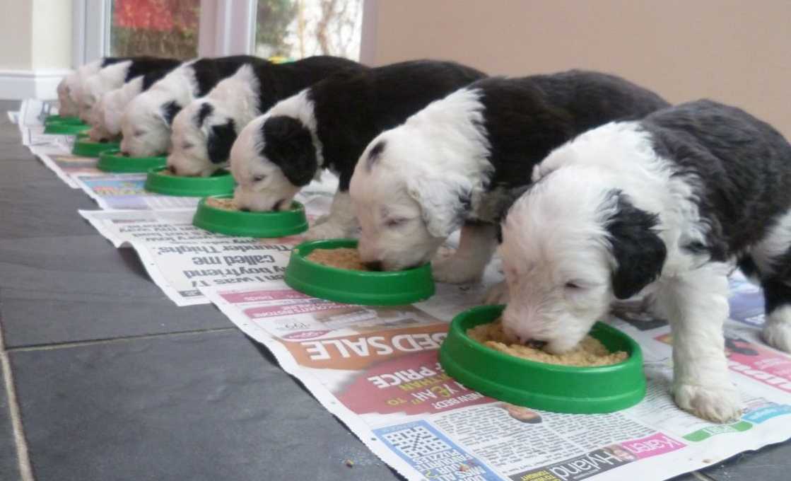 Количество корма и объём каждой порции нужно рассчитывать строго индивидуально, исходя из возрастных особенностей, двигательной активности и потребностей домашнего питомца. Щенков староанглийской овчарки следует кормить достаточно часто, но не слишком большими порциями. Примерно до возраста двух месяцев режим дачи корма составляет пять раз в сутки. По мере роста и развития питомца количество кормлений плавно сокращается.