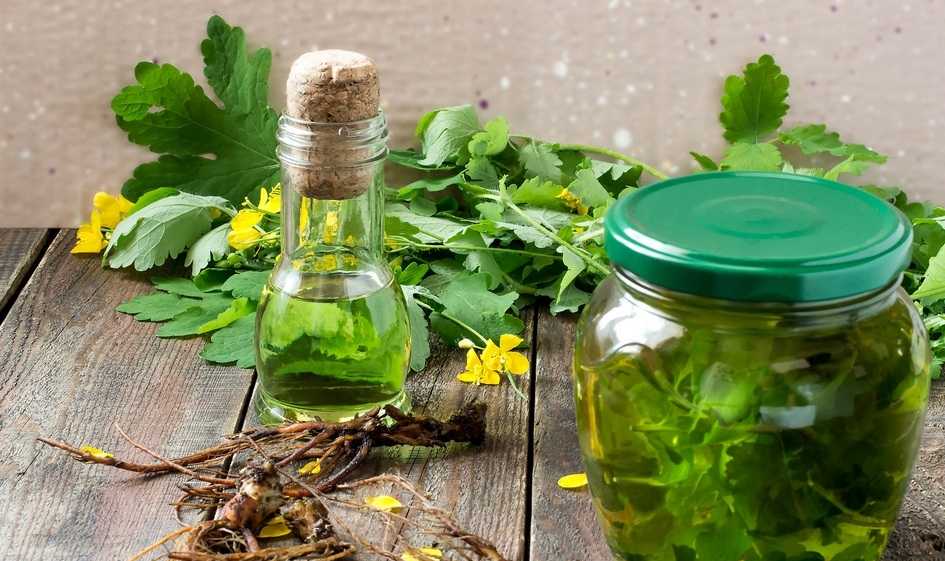 - Чистотел. Листья и корневища травы достаточно ядовиты, с ними нужно правильно работать. Высокая эффективность отмечена у спиртовой настойки и сока чистотела. Обрабатывать кожу с антибактериальными целями можно только разведенными настойками. Чистотел в любом виде запрещено использовать при риске развития онкологии — доказано, что растение стимулирует рост опухолей.