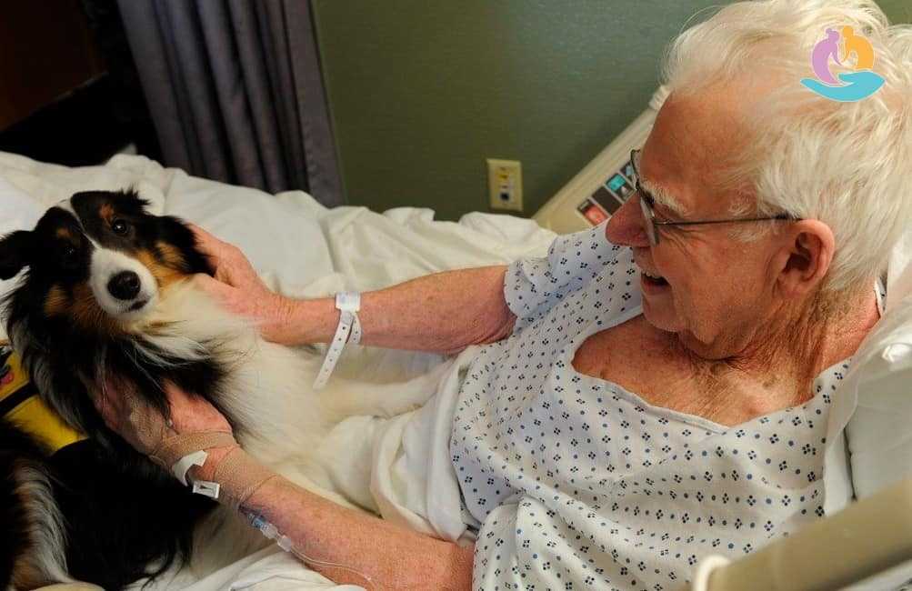 Когда больной двигаться не может, собака-терапевт ложится рядом с ним. Инстинктивно она чувствует, где у «подопечного» больное место, и делает все, что в ее силах, чтобы облегчить страдания. Так, она может вылизывать ногу, на которой сильно расширены вены, может ложиться рядом и греть больные суставы, почки, сердце. Когда человек поглаживает животное, перебирает пальцами его шерсть, задействуется мелкая моторика, и многочисленные импульсы от этих мышц идут в мозг, улучшая его работу. Это полезно при любом виде ухудшения работы мозга: сосудистой деменции, болезни Альцгеймера.