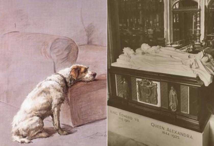 Гробница короля Эдуарда и его королевы Александры находится в часовне Святого Георга. Если приглядеться, у ног покойного короля можно разглядеть свернувшегося калачиком его верного друга и спутника Цезаря.