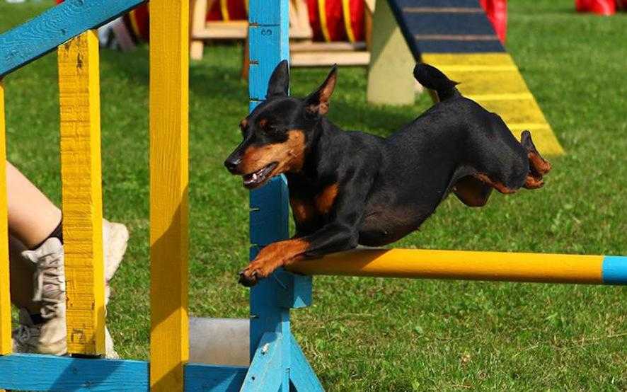 Цвергпинчер с ошеломительной ловкостью и скоростью осваивает снаряды на тренировочной площадке, и для него не составляет особого труда с места преодолеть препятствие, превышающее его рост в пять раз. Подобные способности в сочетании с отличной маневренностью делают цвергпинчера одной из лучших пород, демонстрирующих выдающиеся успехи в аджилити.