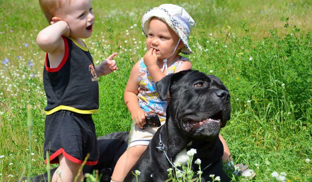 С детьми взаимопонимание полное, итальянцы даже опекают отпрысков хозяина. Возможно, корни такого поведения зародились с пастушьих времен, когда собаки заботились о телятах и ягнятах и пронесли эту особенность сквозь не одно тысячелетие. В любом случае можно оставить кане-корсо с детьми и благополучно заниматься своими делами.