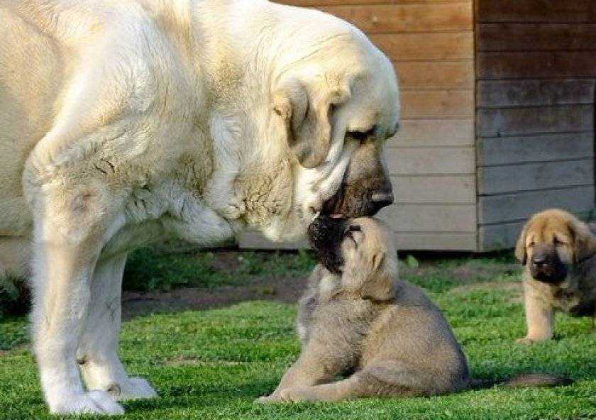 Отношения с другими животными. Покладистый нрав позволяет испанскому мастифу ужиться практически с кем угодно, от котят и грызунов до других собак. Однако этой собаке требуется много внимания хозяина, если его не хватает, возможны серьёзные проявления ревности.