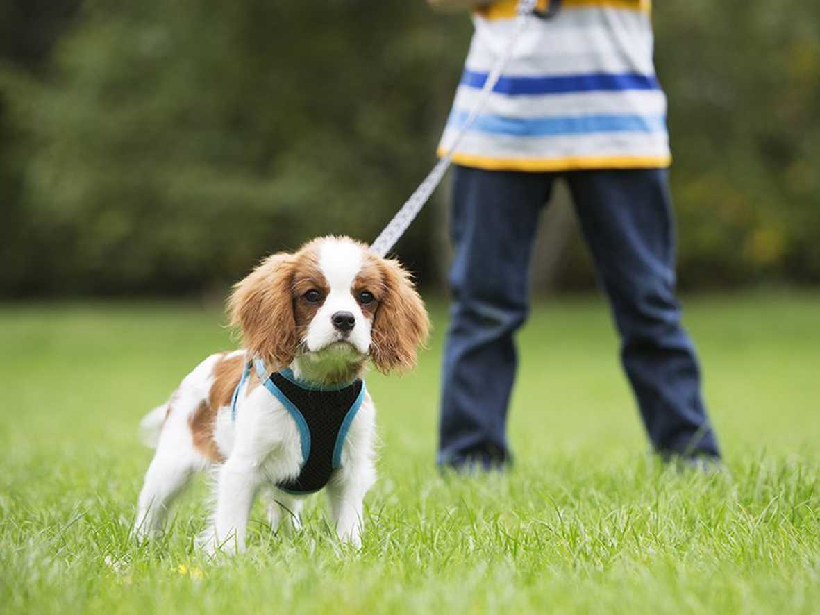 Пока собака еще маленькая выводить ее следует только на поводке. Учитывая, что она еще не знает команд, это обязательное условие для ее безопасности. Также желательно выбирать максимально тихие и спокойные места. Если сразу вывести малыша во двор полный машин и других собак это вызовет у него стресс.