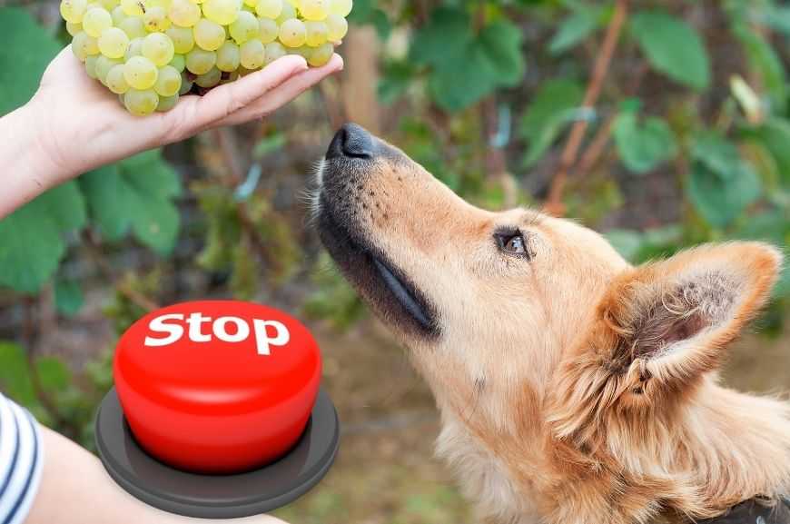 Виноград потенциально способен вызвать острую почечную недостаточность. До сих пор не выявлено вещество, которое содержится в винограде или изюме, вызывающее эту реакцию. Симптомами «виноградной» токсикации у собак могут стать рвота или диарея, частое мочеиспускание или его отсутствие, внезапный крепкий сон, боль в области живота при прикосновениях, обезвоживание. Самый простой способ проверить собаку на обезвоживание — натянуть вверх кожу в заднем районе шеи, если всё хорошо, кожа немедленно возвратится в своё исходное состояние.