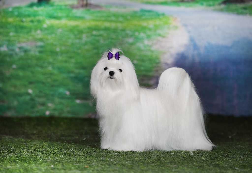 Для выставок белоснежную шерсть мальтийских болонок отращивают, чтобы она доставала до земли. Сушат по направлению роста, покров должен быть единым, без проборов и клочков.