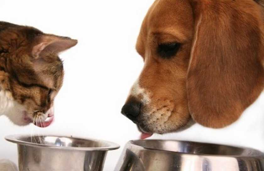 Это особенно важно на начальном этапе знакомства. Порции накладываются и отдаются одновременно и собаке нельзя позволять доедать порцию кота.