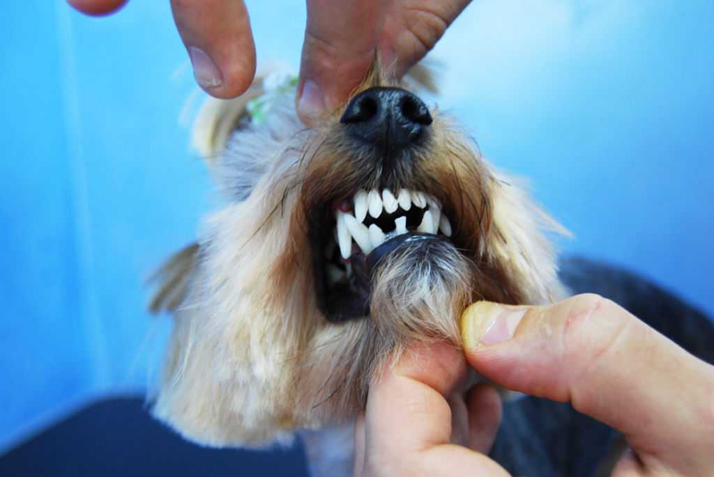 О зубной боли говорит осторожность во время приема пищи, склоненная на бок голова, некоторые собаки трут пасть лапой, «беспричинно» взвизгивают, не разрешают трогать морду