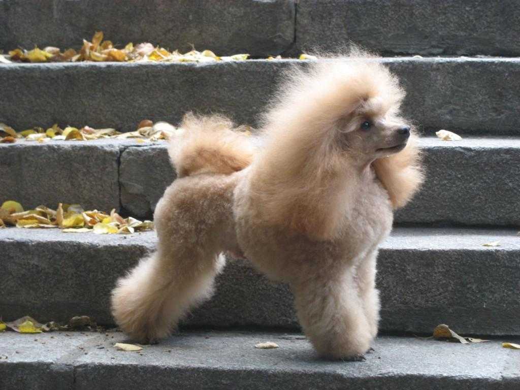 Малые пудели – не самая простая в уходе порода именно из-за шерсти. Каждые 2-3 недели собаку нужно купать со специальным собачьим шампунем, после чего сушить феном и расчесывать.