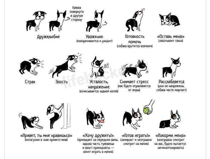 Любовь. Собака не только норовит лизнуть человека, она выражает радость всем своим видом – виляет хвостом, прыгает на грудь, старается забраться на руки, повизгивает по-щенячьи.