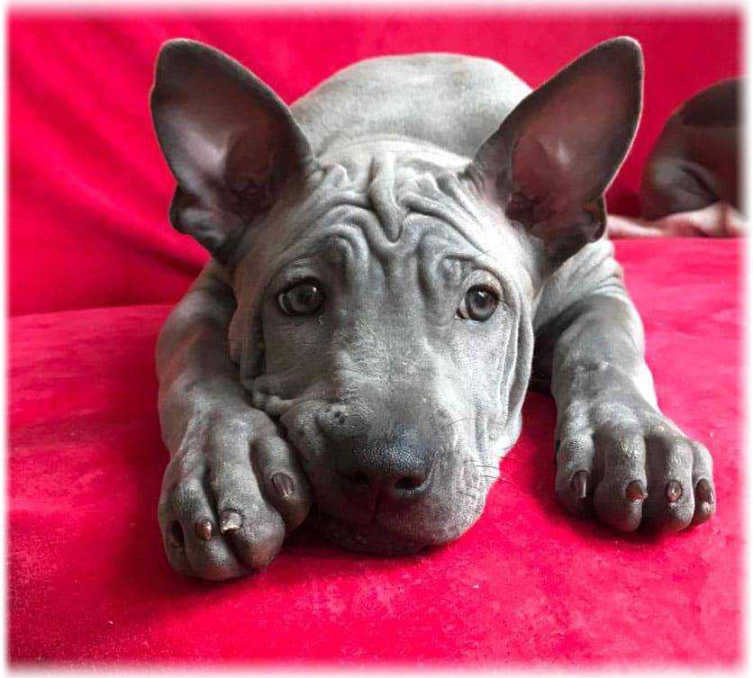 Щенки тайского риджбека по описанию очень похожи на маленьких шарпеев. Все их тело покрыто огромным числом нежных складочек. Но со временем малыши вырастают и шкурка разглаживается – морщинки останутся только на шее и голове в небольшом количестве.