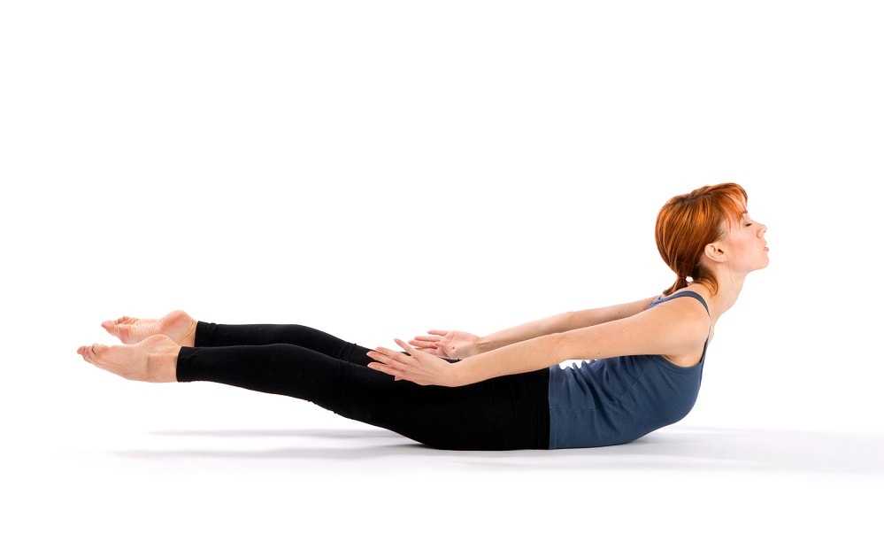 - Одновременно отрывайте грудь и ноги от пола, сгибаясь в пояснице.