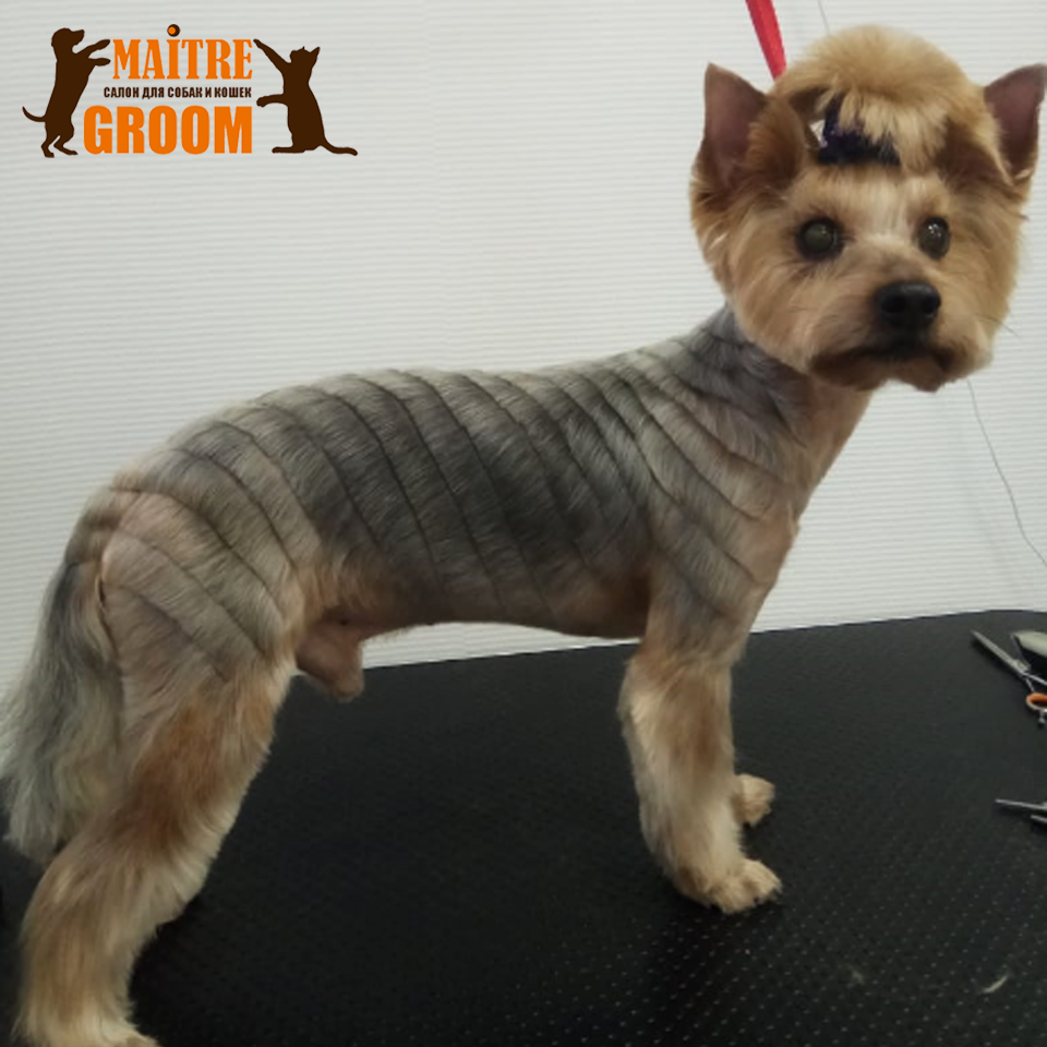 Здесь нет четких правил. Креативный груминг позволяет ставить различные эксперименты над образом питомца. На спине животного можно сделать любой рисунок, оставить полосы для кос и других причесок. Есть возможность экспериментировать с длиной. Благодаря тому, что шерстяной покров йорков растет быстро, прическу легко поменять, если опыт не понравился.